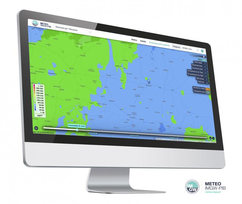 Kolejną nowością w serwisie IMGW-PIB jest monitoring i prognoza zanieczyszczenia powietrza. Funkcjonalność ta umożliwia bieżącą obserwację jakości powietrza i występowania alergenów, np. pyłków traw i brzóz. Dane pochodzą z konsorcjum, z którym współpracuje Instytut – Copernicus Atmosphere Monitoring Service (CAMS) i opierają się na modelach numerycznych jakości powietrza. W naszym serwisie prezentujemy: ilość ozonu w troposferze, zawartość dwutlenku siarki i azotu, tlenku węgla oraz pyłów PM10 i PM2.5. Serwis meteo.imgw.pl będzie stale udoskonalany.